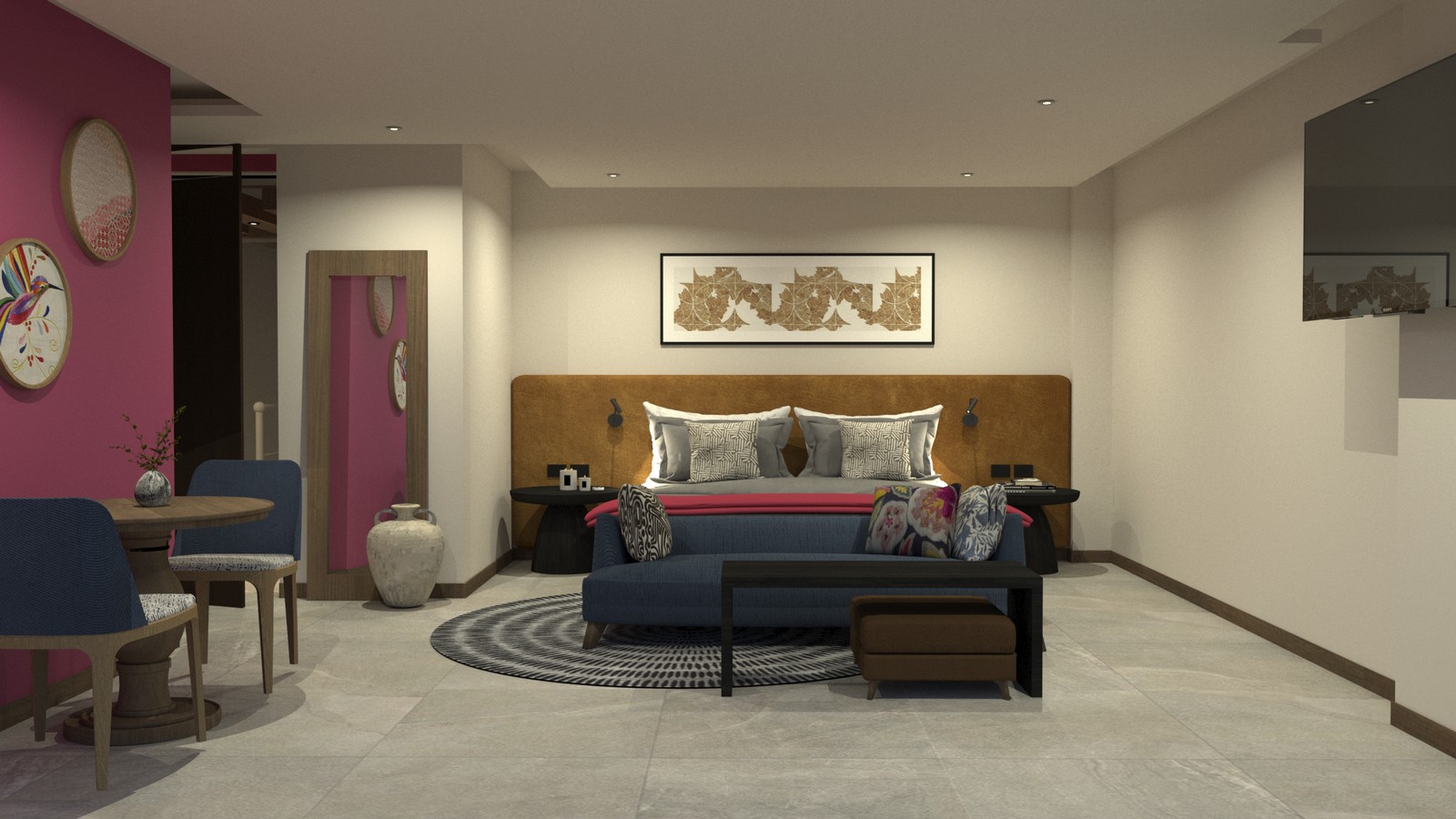 Comodidad, lujo y sofisticacion en una Suite de 34.96  m2, Terraza  33.85 m2 equipada, con profusión de piezas artesanales y vistas al volcán Popocatépetl, Iztaccíhuatl el Centro Histórico y el Templo de Nuestra Señora de la Luz.
