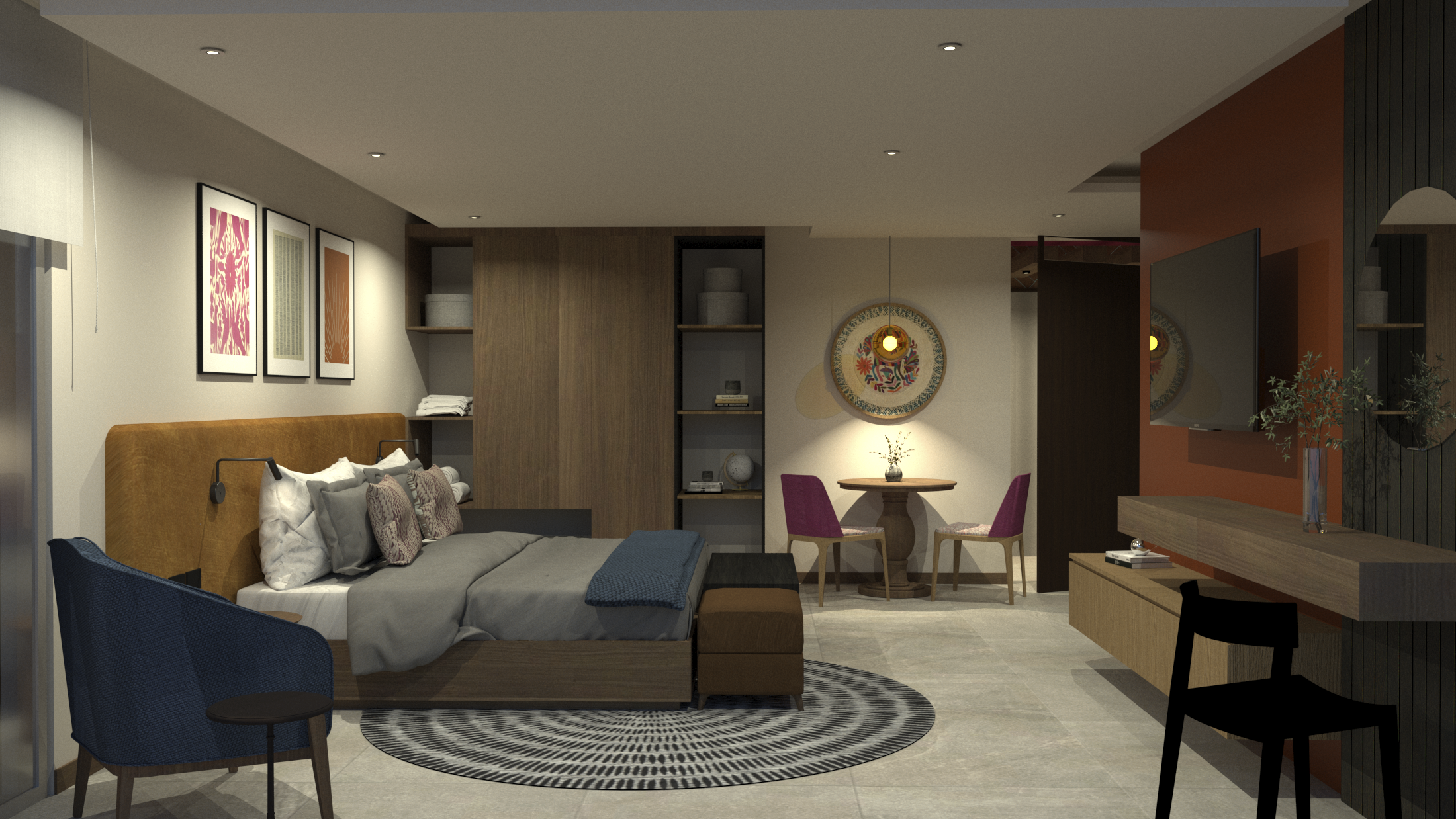 Aires acondicionados,  Smart TV, Internet, Cocina integral totalmente equipada, 1 Baño completo, Closet con caja de seguridad, Puertas y ventanas Kömmerling con aislamiento acústico y térmico, Cafetera con servicio de café y té,  Secadora de pelo,  Aromaterapia